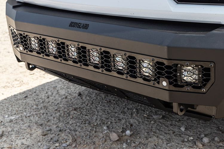 Their products range from base bumpers to full-cover grille guards and everything in between. Several options are also available to customize and accessorize. These include sensor slots, light bar mounts, winch mounts, custom powder coating, and more. Bodyguard's own Rigid E-Series LED light bars are also available for a perfect fit with their bumpers.