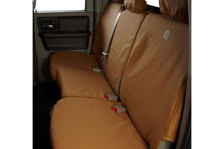 Carhartt® fabric sets the standard for shielding your vehicle's seats from the harsh impact of water, mud, grease, oil, food, and dirt, providing the protective armor your seats deserve. Known for its durability, these covers are meticulously fashioned from the robust Carhartt® duck weave fabric, epitomizing resilience. The main seams are double stitched, ensuring superior strength and longevity. When it comes to preserving and enhancing the aesthetics of your vehicle, Carhartt® Seat Covers are your go-to choice.