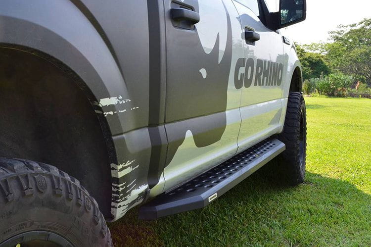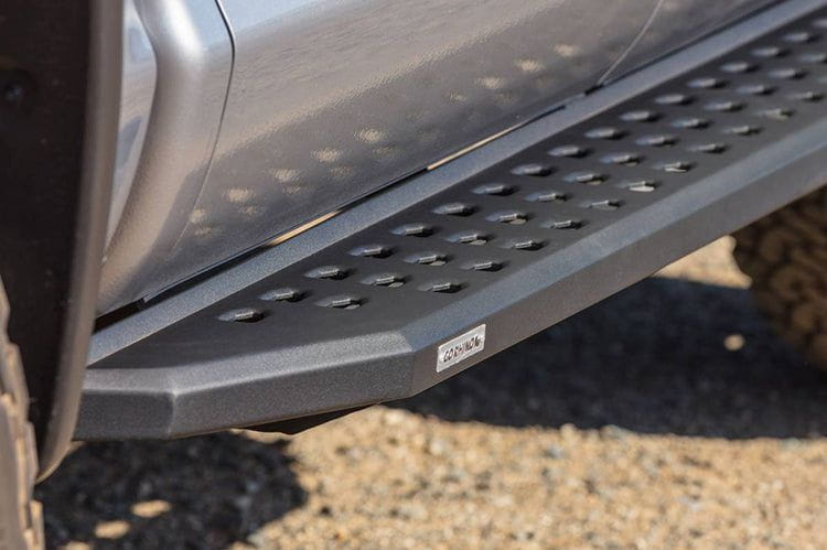 Introducing the iconic RB Series cab length running boards by Go Rhino, designed to give your truck, Jeep, or SUV a distinct edge. These bolt-on side steps not only exude an aggressive and stylish vibe inspired by the Ford Raptor but are built to deliver more than just aesthetics.