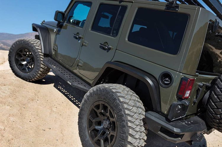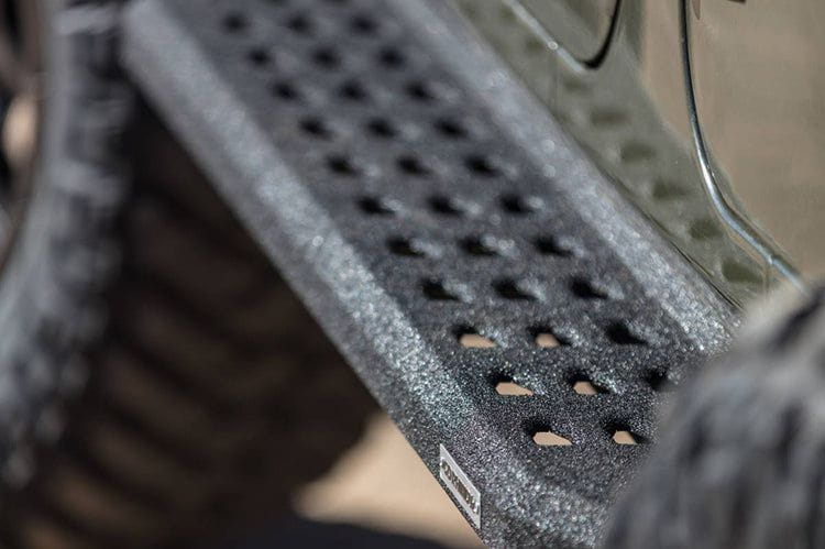 The RB20 running boards feature strategically perforated holes on the step's surface, ensuring maximum traction and preventing the accumulation of mud, ice, or snow. Crafted from 16-gauge zinc-coated steel, these steps are corrosion-resistant, ready to withstand the elements. Positioned high and snug, they provide ample clearance for off-road escapades and possess the strength to bear significant weight.