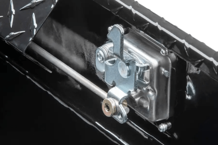 The Secure Lock crossover truck tool box combines ultimate security with exceptional versatility. Equipped with two lockable twist handles, it enables locking from either side of the vehicle. Additionally, these handles are interconnected by a rod, granting the convenience of opening the box from either side as well.