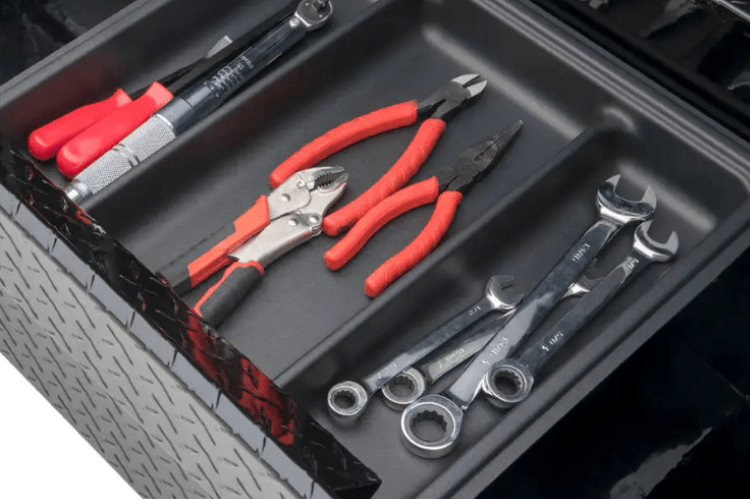 Secure Lock truck tool boxes offer a distinctive feature with their integrated BedRug™ liner, which not only safeguards your tools but also reduces dust accumulation and enhances the overall customized appearance. These truck tool boxes also showcase our patented RigidCore™ foam-filled lid, boasting low-profile design, robust aluminum construction, and a self-closing lid mechanism. As with all UWS truck tool boxes, this product is proudly assembled in the United States.