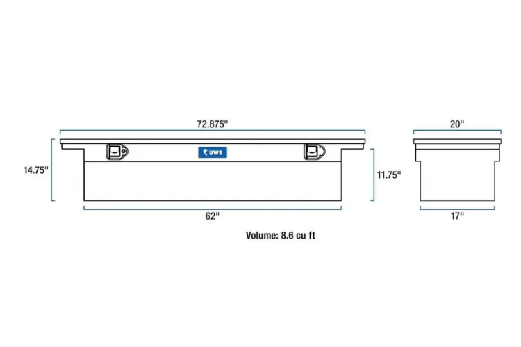 Secure Lock truck tool boxes offer a distinctive feature with their integrated BedRug™ liner, which not only safeguards your tools but also reduces dust accumulation and enhances the overall customized appearance. These truck tool boxes also showcase our patented RigidCore™ foam-filled lid, boasting low-profile design, robust aluminum construction, and a self-closing lid mechanism. As with all UWS truck tool boxes, this product is proudly assembled in the United States.